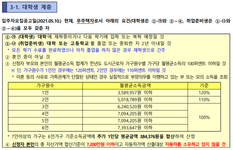 -무주택 세대주 및 세대 구성원 (대학생,청년 은 부모님이 집을 갖고 계셔도 본인만 무주택자라면 괜찮습니다)
