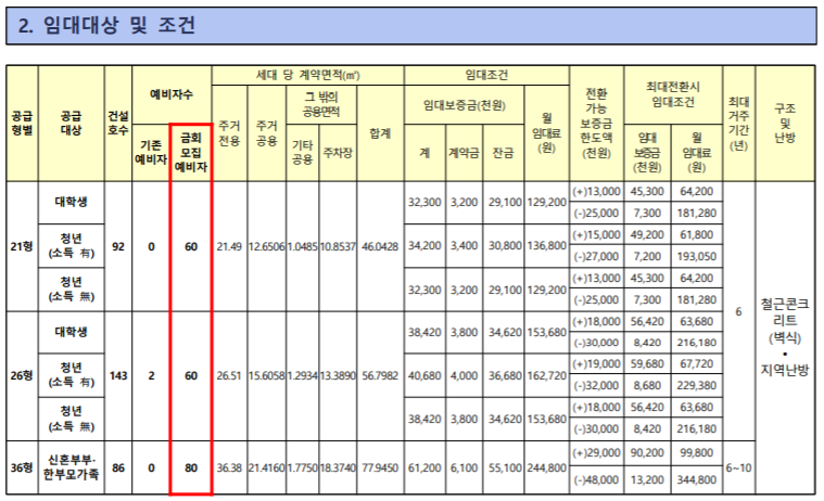 21형과 26형은 청년,대학생이 지원가능, 31형은 신혼부부 및 한부모 가정이 지원 가능합니다.