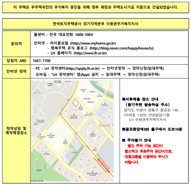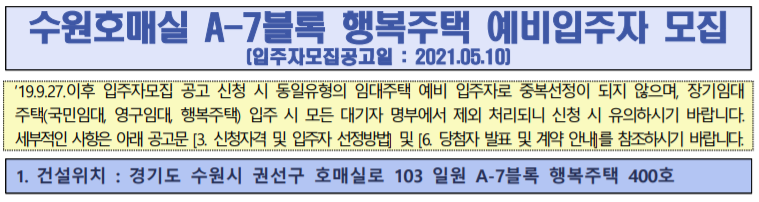 주소 : 경기도 수원시 권선구 호매실로 103 일원 a-7 블록 행복주택 400호